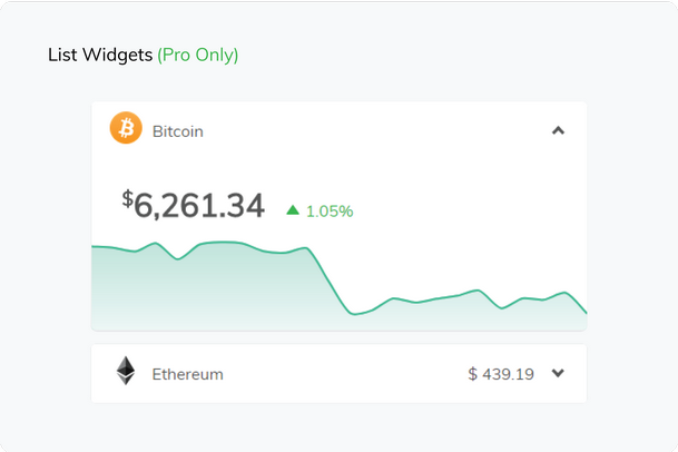 We show many display widgets like crypto price cards, crypto pricing table, etc.